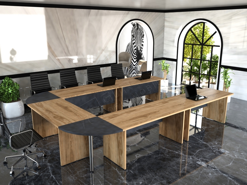 2209 Toplantı Masaları, geniş toplantı alanları ve büyük ekip çalışmaları için ideal bir çözümdür. 390 x 240 x 75 cm, 350 x 240 x 75 cm ve 310 x 240 x 75 cm ölçü seçenekleri, farklı büyüklükteki toplantı odalarına mükemmel uyum sağlar. U şeklindeki tasarımı, katılımcılar arasında iletişim ve iş birliğini kolaylaştırarak verimli bir toplantı deneyimi sunar.